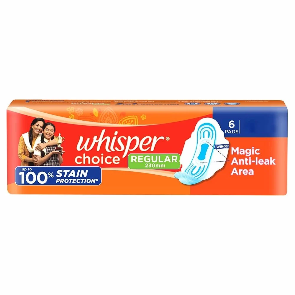 Whisper Choice Sanitary Regular Pads 6 Pack